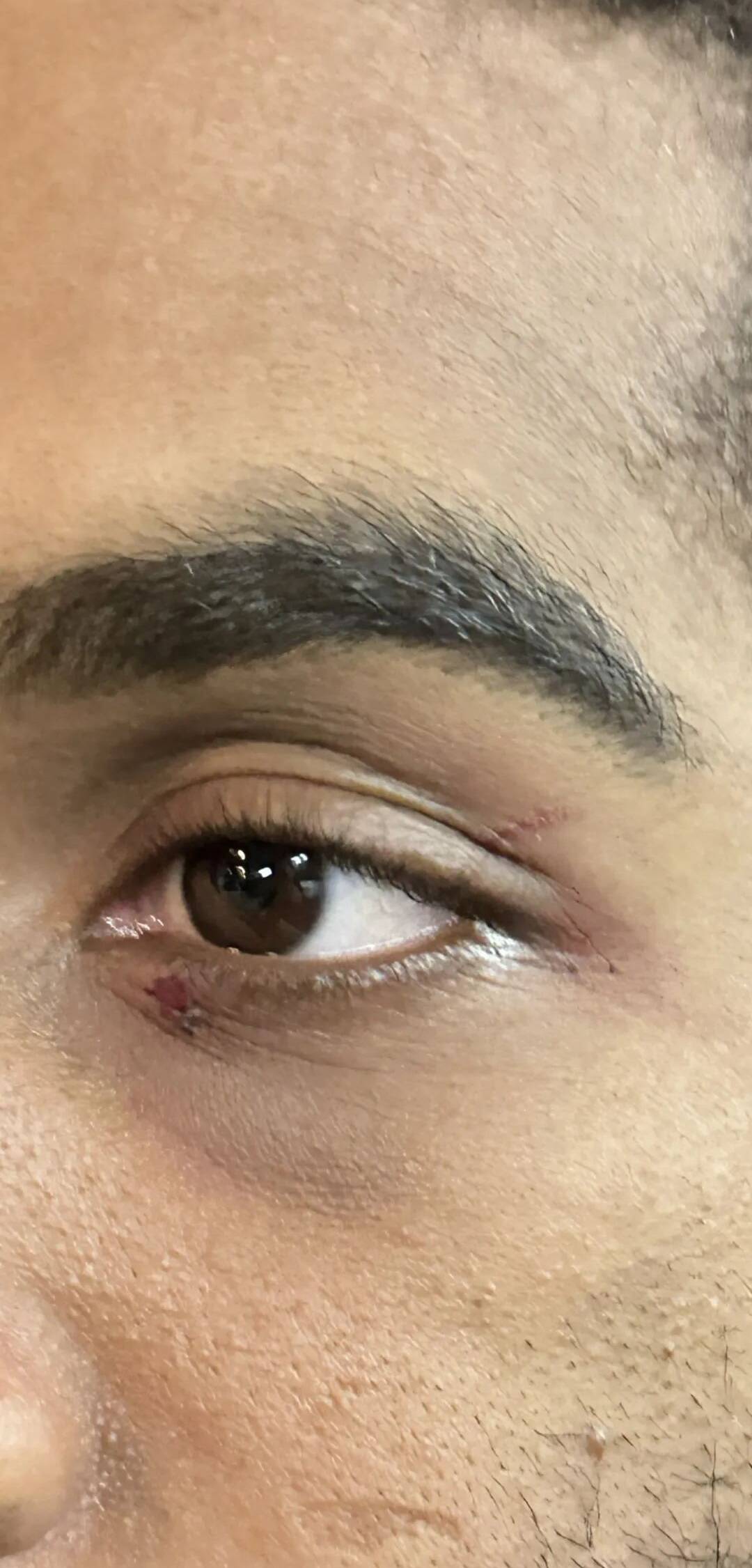 賽後,克裏斯在更衣室一直捂著眼睛,隊醫對他進行了第一時間的簡單處理。通過檢查來看,克裏斯眼睛上下兩側確實受傷,而且是有明顯的傷痕。