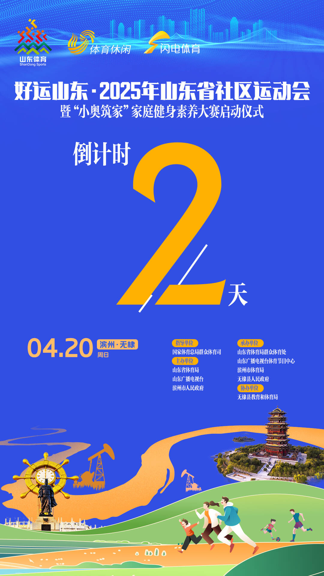 齊魯網·閃電新聞4月18日訊 閃電體育消息,“好運山東”2025山東省社區運動會暨“小奧築家”家庭素養大賽啟動儀式,將於4月20日在濱州無棣啟幕。