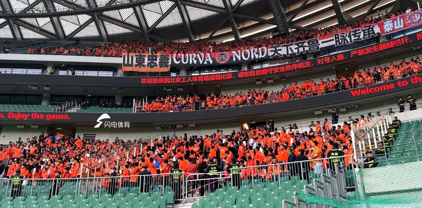 齊魯網·閃電新聞4月19日訊 閃電體育消息,北京時間19點35分,中超第8輪,北京國安vs山東泰山,閃電體育記者在現場觀察到,有5000多名泰山球迷來到了工體現場,為泰山隊加油助威。