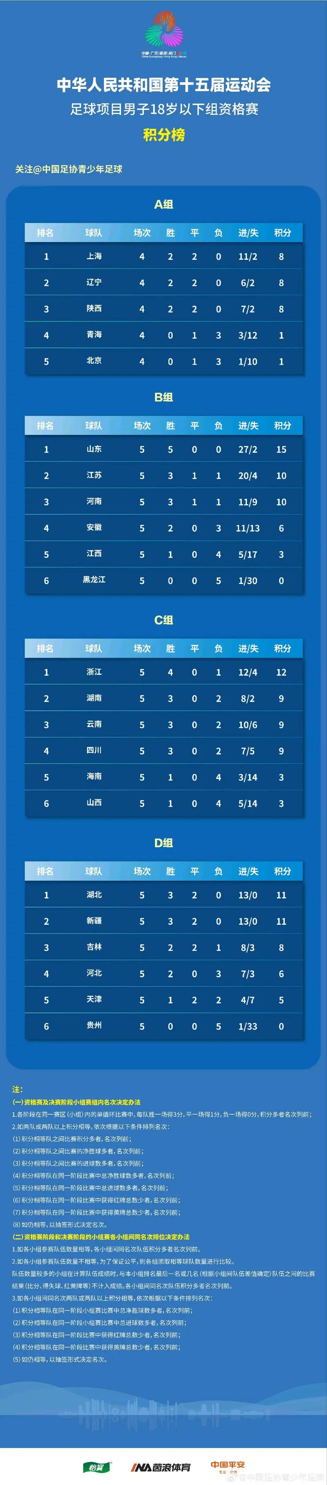 閃電體育6月30日訊 6月29日,中華人民共和國第十五屆運動會U18男足資格賽B組比賽在南京落下帷幕。在最後一輪比賽中,憑借著嶽瑞傑、胡航鳴、雷冠樟的進球,以泰山青訓為班底的山東男足U18隊3-2戰勝江蘇男足,以小組第一的成績晉級決賽階段比賽。