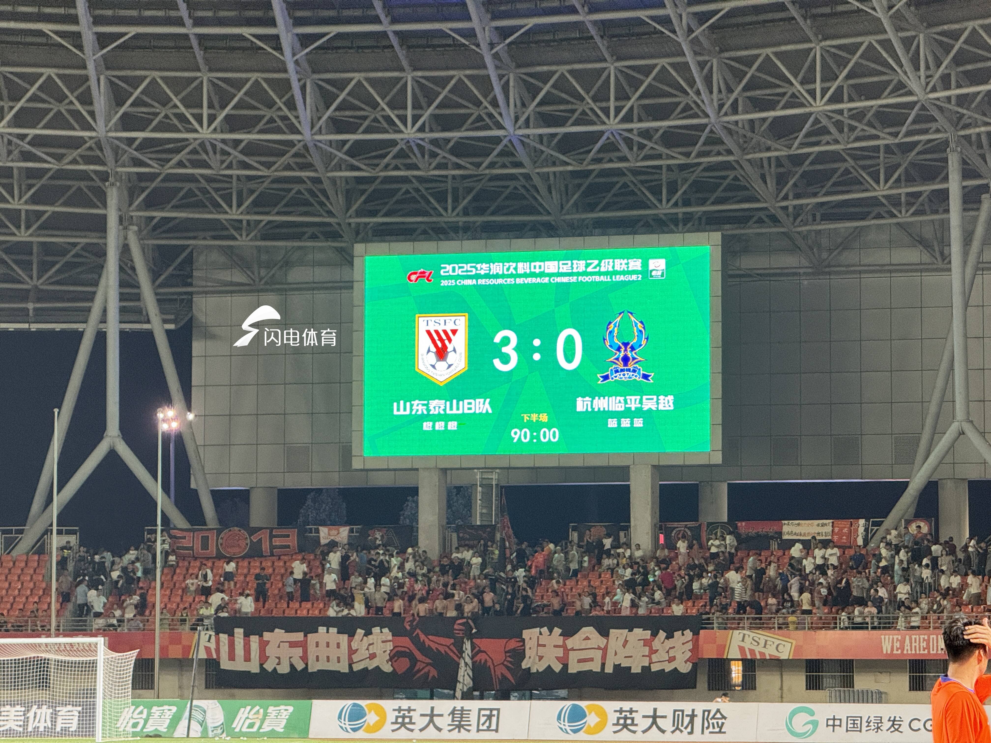 閃電體育7月12日訊 今晚,中乙聯賽第19輪進行,山東泰山B隊坐鎮主場鄒城體育中心迎戰杭州隊,這是主帥韓鵬最後一次以B隊主教練身份指揮比賽,最終憑借王昊斌和張羽桐以及艾孜海爾·塔西麥麥提的進球,泰山B隊3-0擊敗對手。