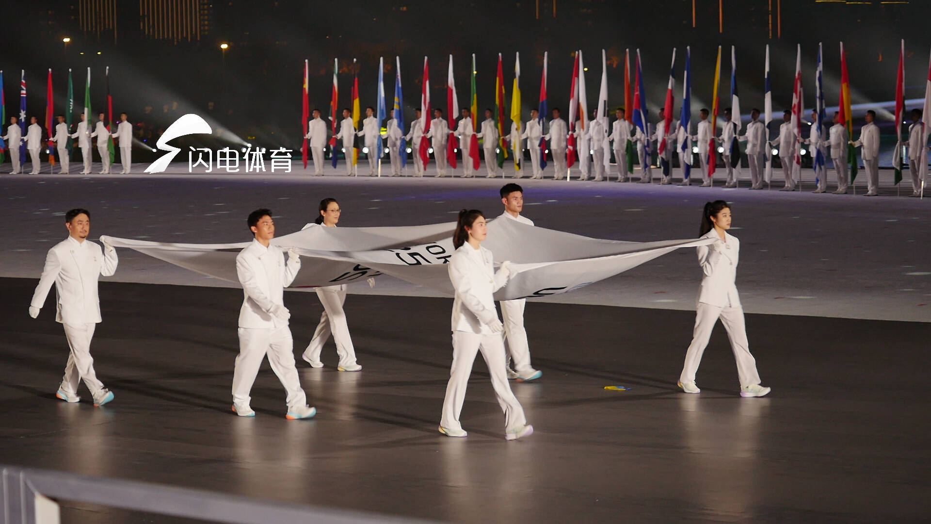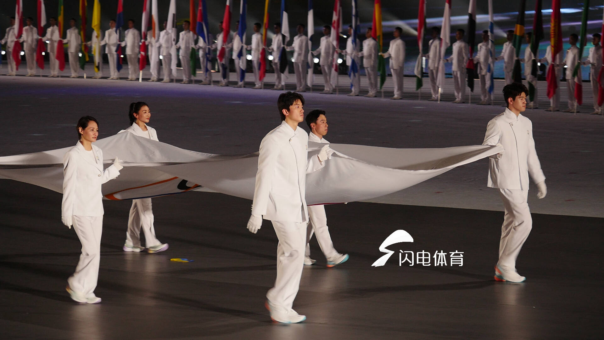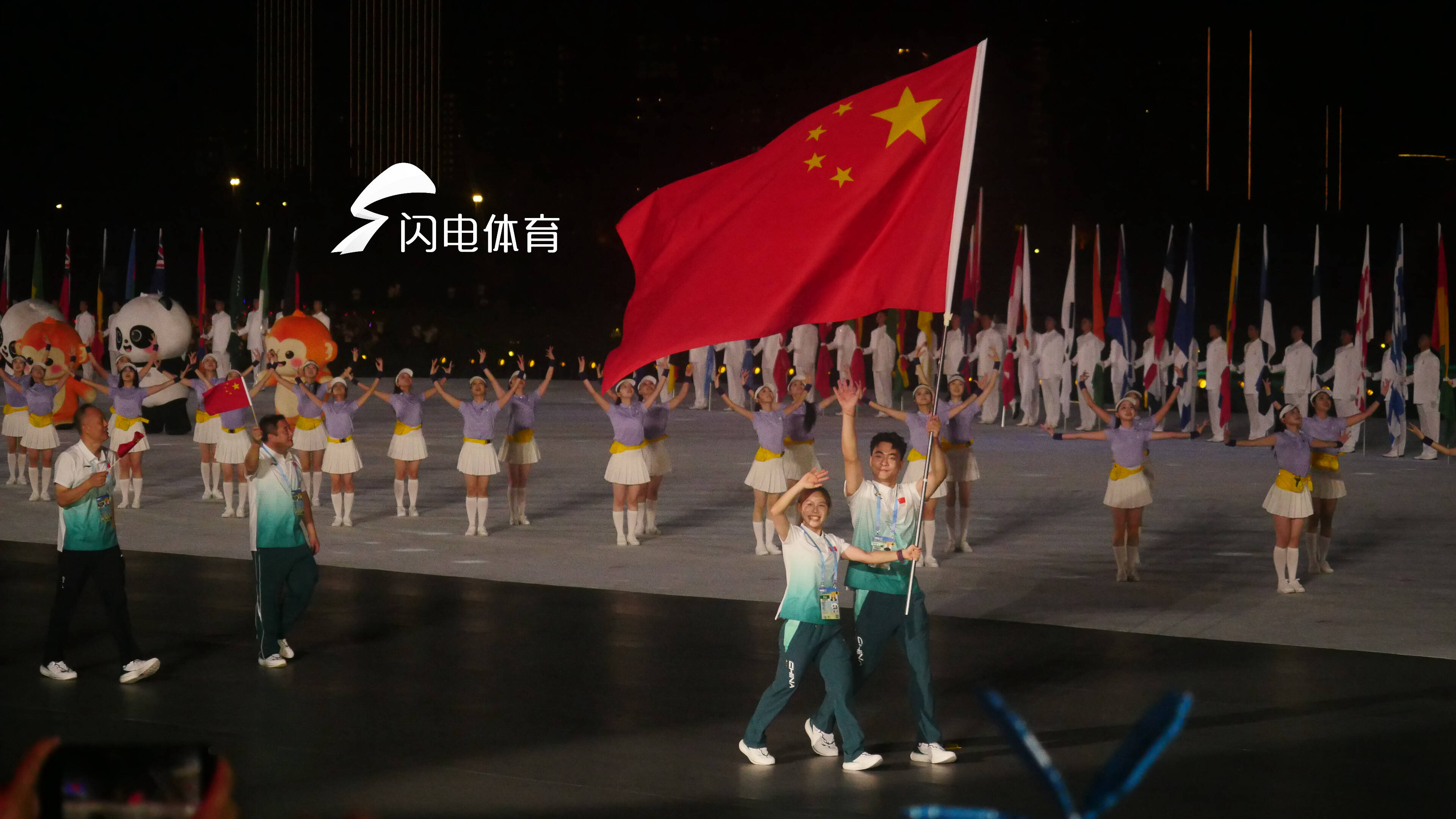 潘曉婷、劉清漪、孫誌安、韓秋、張雒、張詩藝作為國際世界運動會協會會旗執旗手,汪順、潘展樂、高敏、鄒凱、鄒敬園、何雯娜作為國際奧林匹克委員會會旗執旗手,張雨霏、黃張嘉洋、何烽、胡荷韜、郭亮、孫傑作為成都世運會組委會會旗執旗手,依次入場。