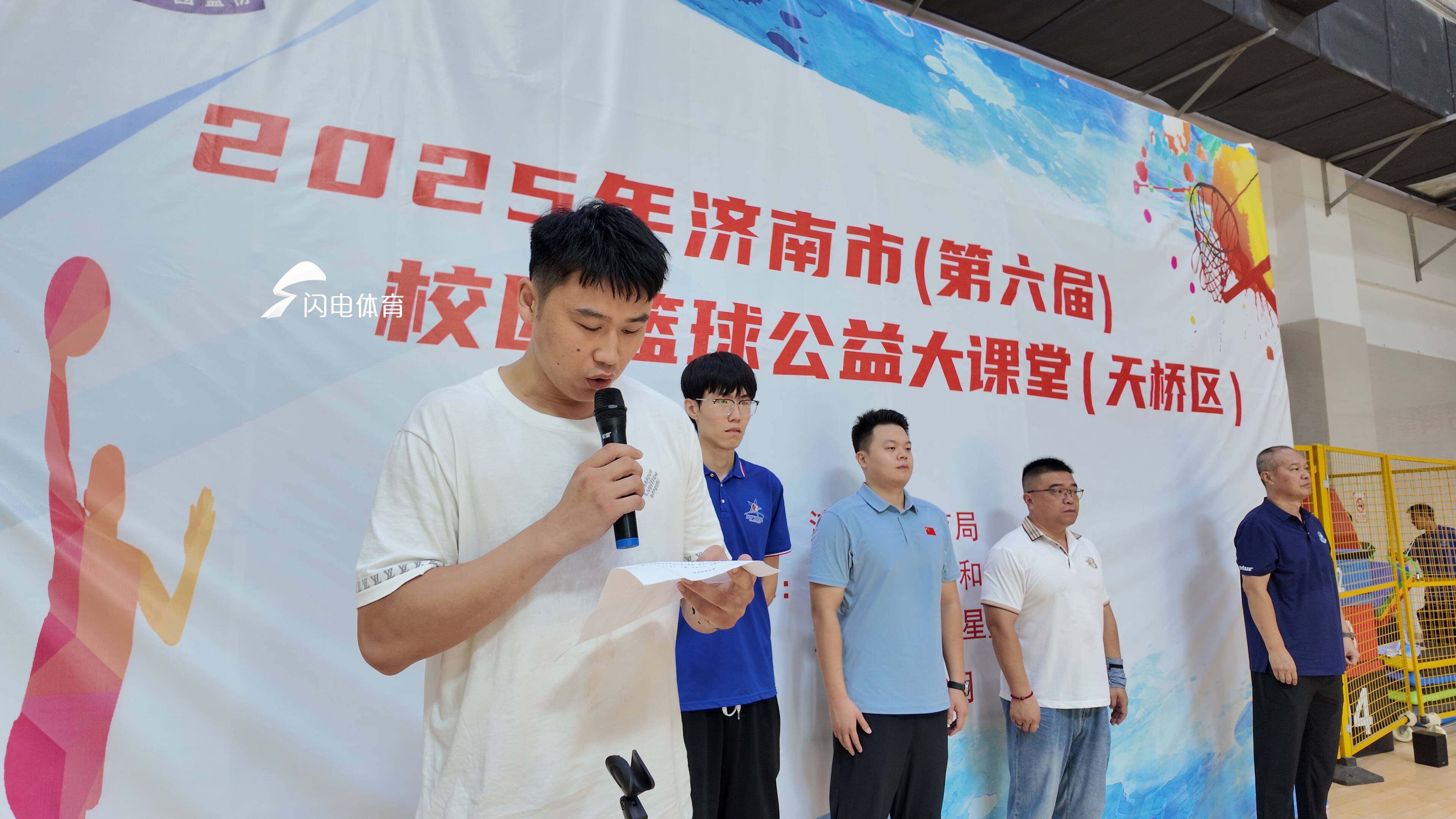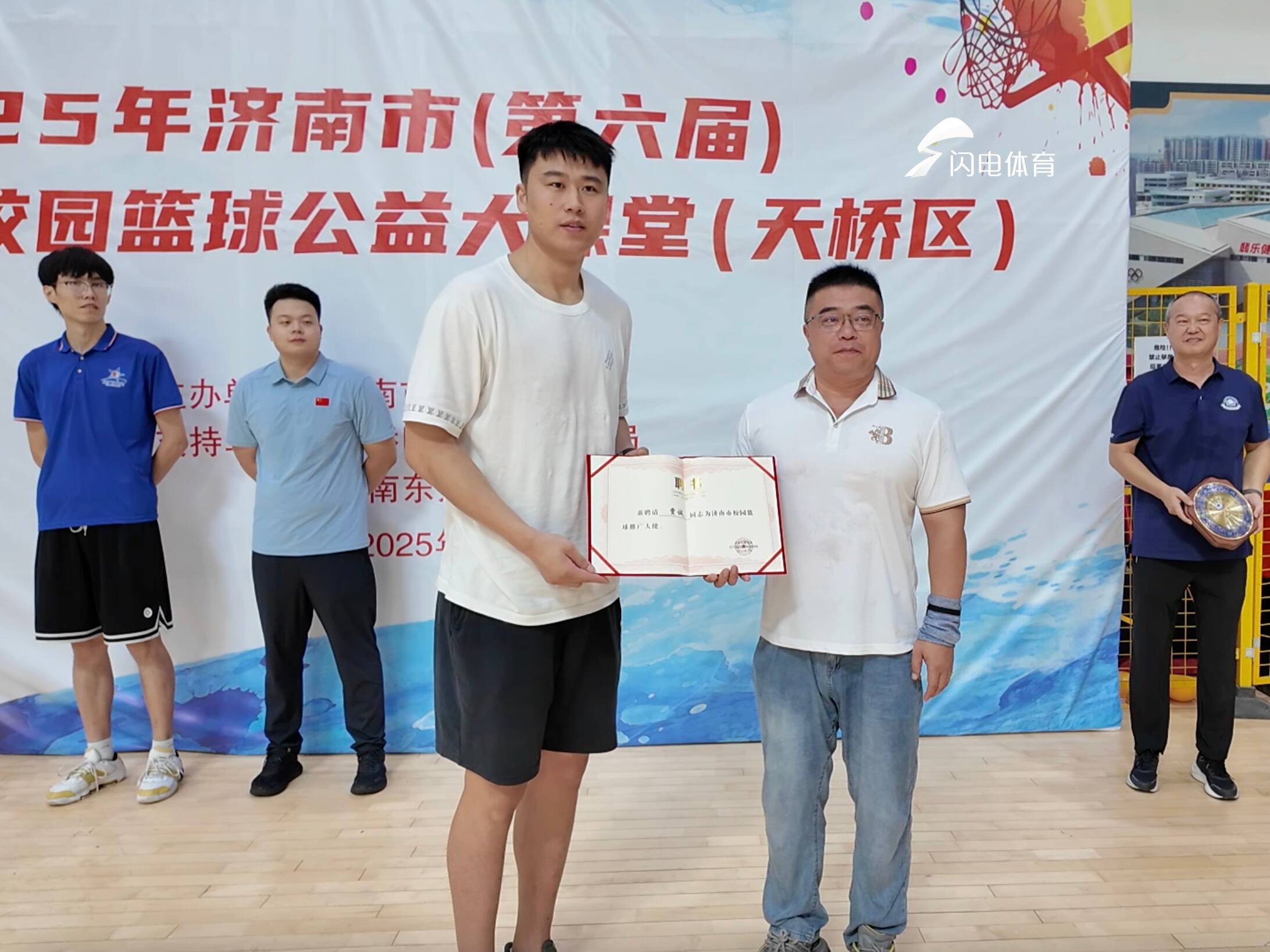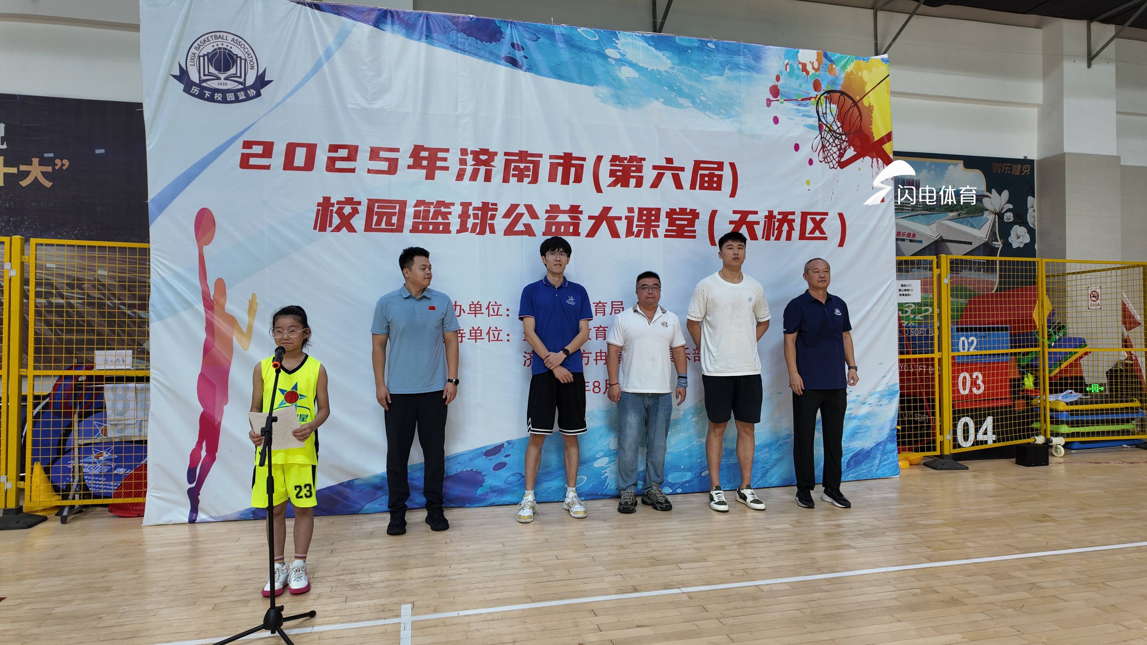 閃電體育8月15日訊 8月14日上午,2025第六屆濟南市校園籃球公益大課堂天橋站在天橋區全民健身中心東方冉星籃球館舉行,本次活動由濟南市教育局主辦,天橋區教體局和濟南東方冉星籃球俱樂部承辦,濟南市校園籃球辦公室選派優秀教練員授課,共有100餘名青少年籃球愛好者參加。前山東男籃隊長賈誠親臨現場參加活動並受邀擔任“濟南市校園籃球推廣大使”。