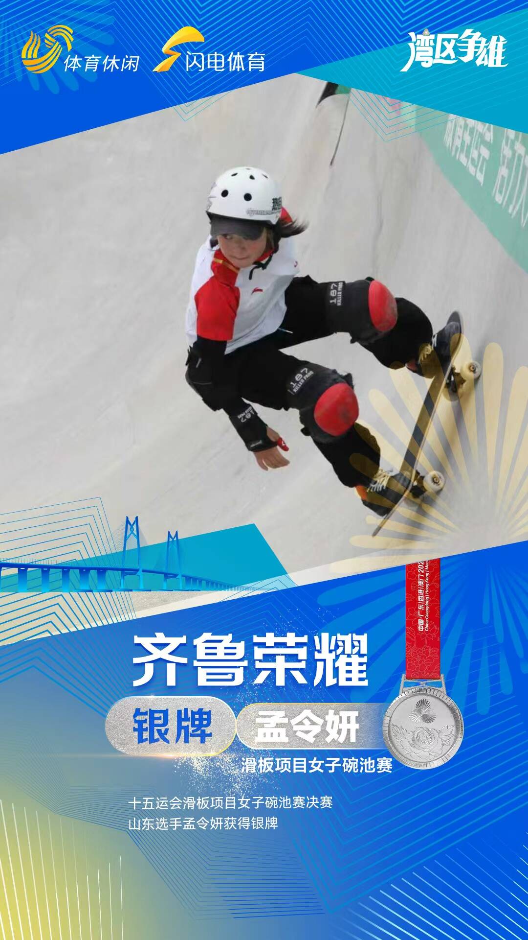 2013年9月出生、年僅12歲的山東選手孟令妍,在滑板女子碗池賽中以極微小的差距負於東道主選手獲得銀牌,雖未獲取金牌、卻贏取了未來。