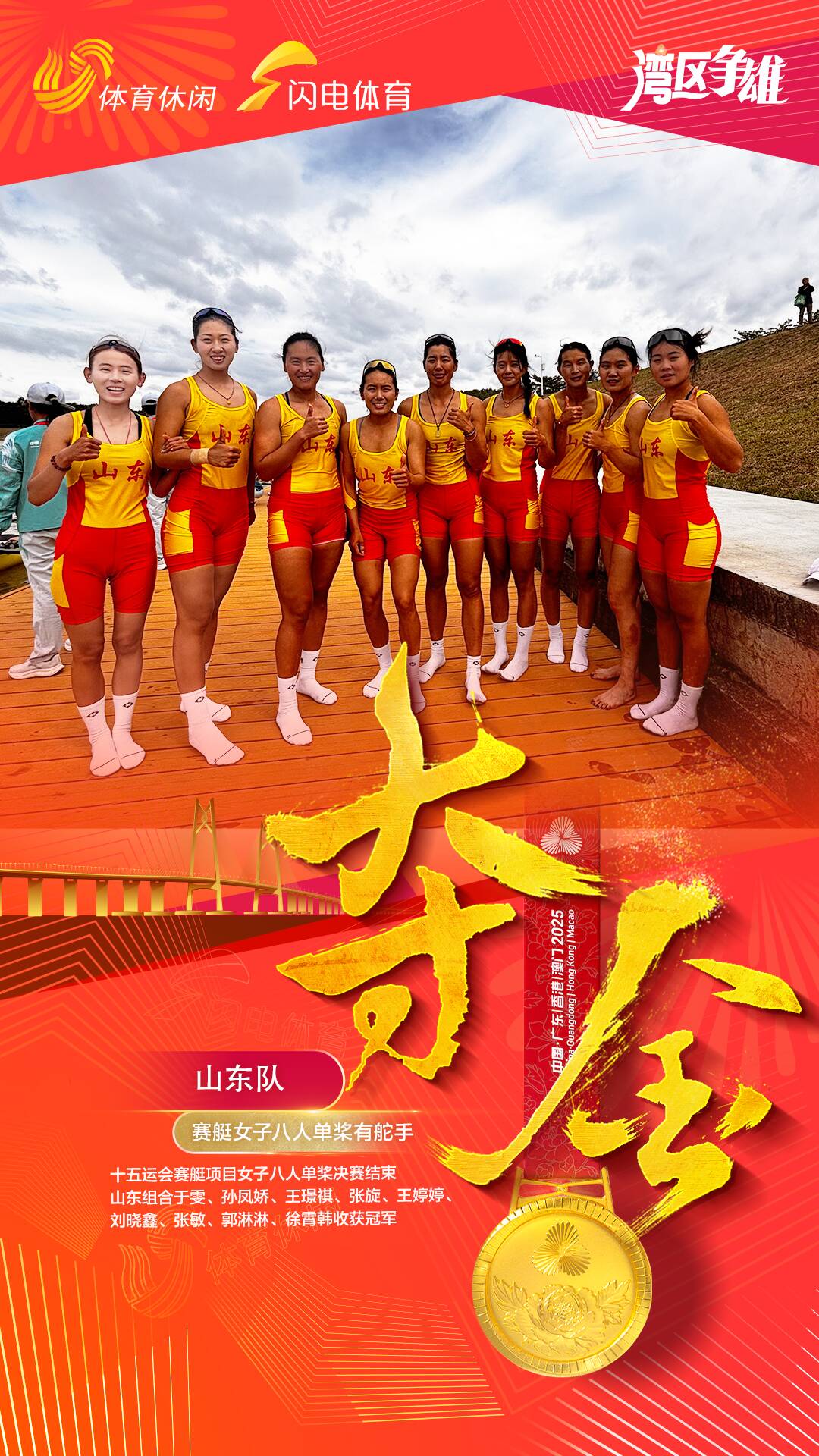 在賽艇的男女八人單獎有舵手比賽中,山東隊包攬並蟬聯金牌,顯示出強大的個體能力和團隊實力。